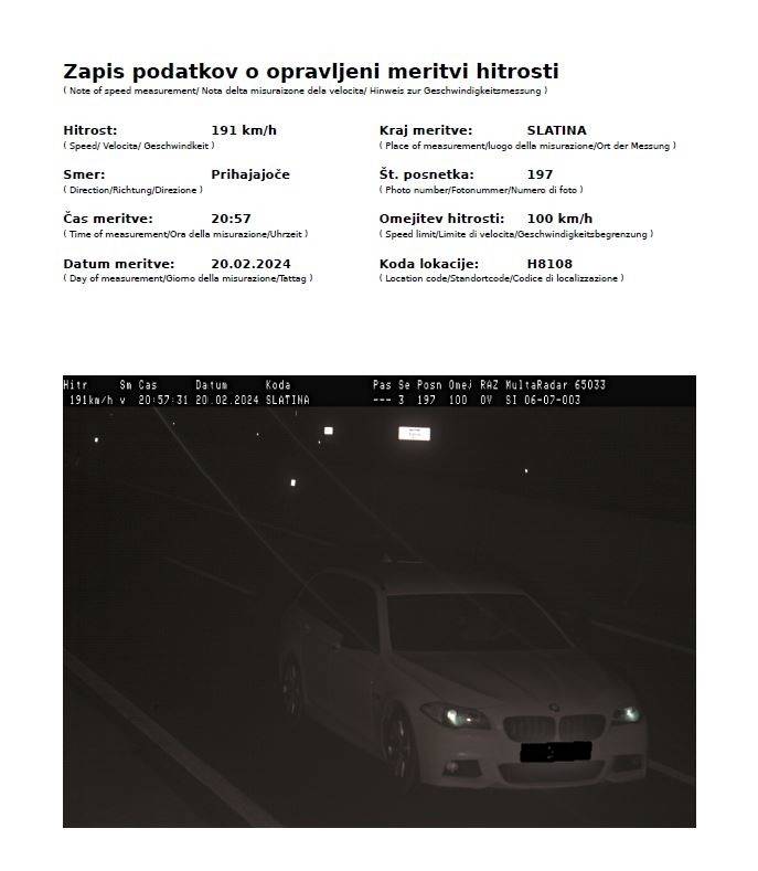 Kršitelju so tudi v drugo izdali plačilni nalog za plačilo globe 1200 evrov in mu izrekli devet kazenskih točk.