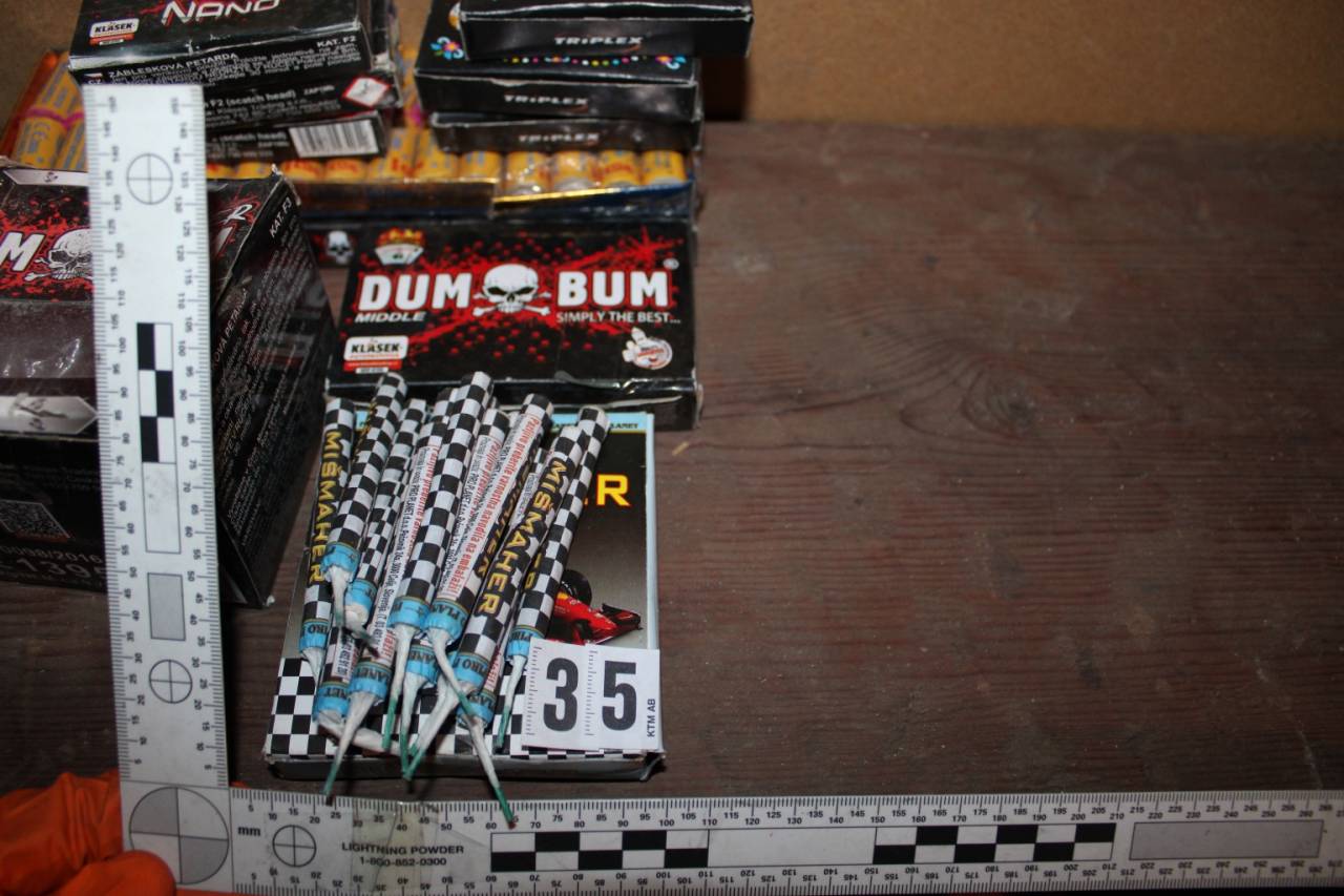 V prostoru, prirejenem za izdelovanje razstreliva so našli in zasegli še 1.850 kosov prepovedane pirotehnike, en kilogram smodnika, pet kilogramov različnih snovi za izdelovanje eksploziva, 30 večjih tulcev, napolnjenih z eksplozivom in vžigalno vrvico domače izdelave.