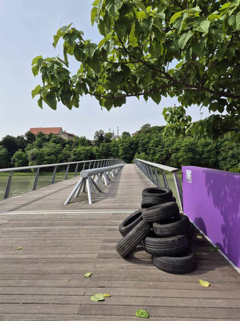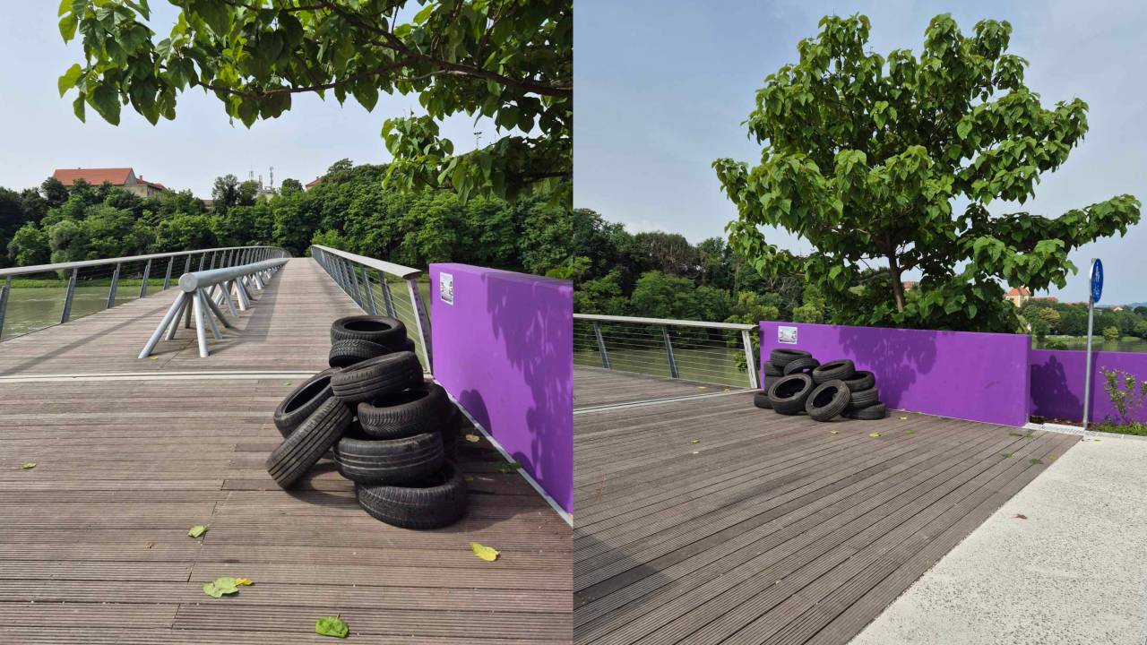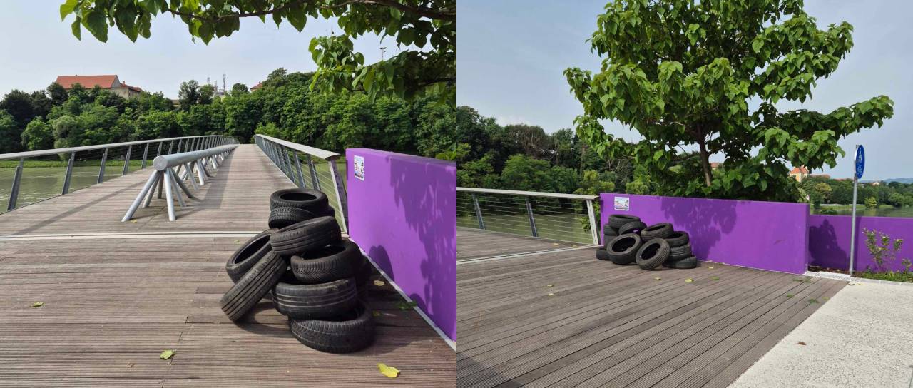 Med nedeljskim sprehodom po mestu so številni Mariborčani šokirano opazovali kup avtomobilskih gum ob Studenški brvi.