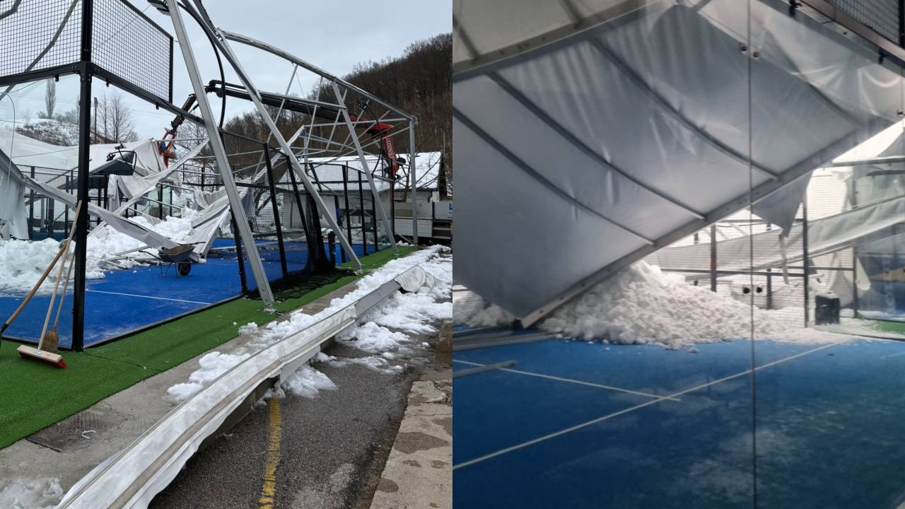 Petkovo izredno stanje zaradi snega je pustilo posledice tudi na športni infrastrukturi. V centru Hopa Padel v Pesnici je teža mokrega snega porušila šotor nad igrišči.