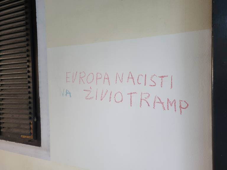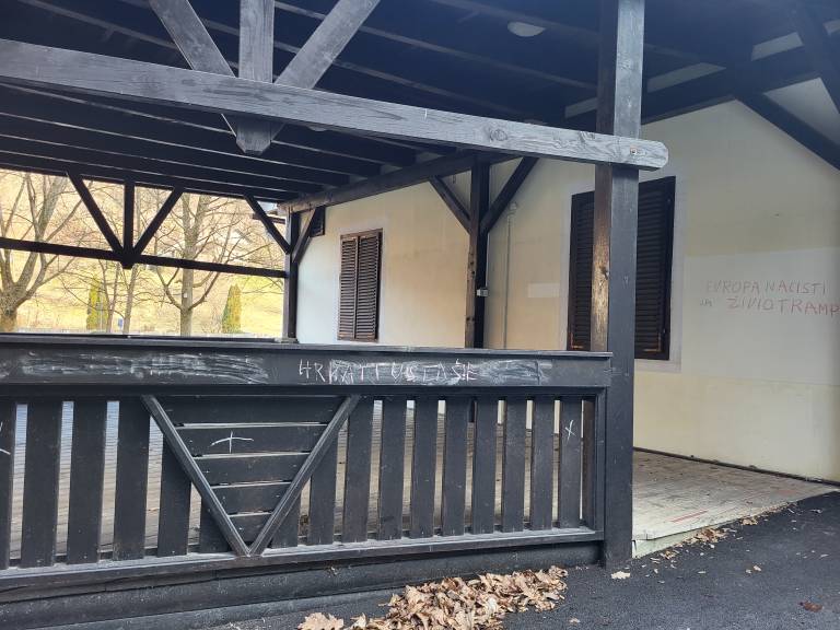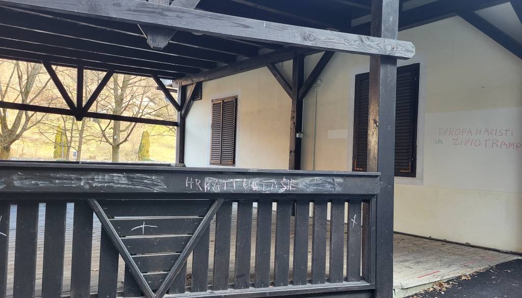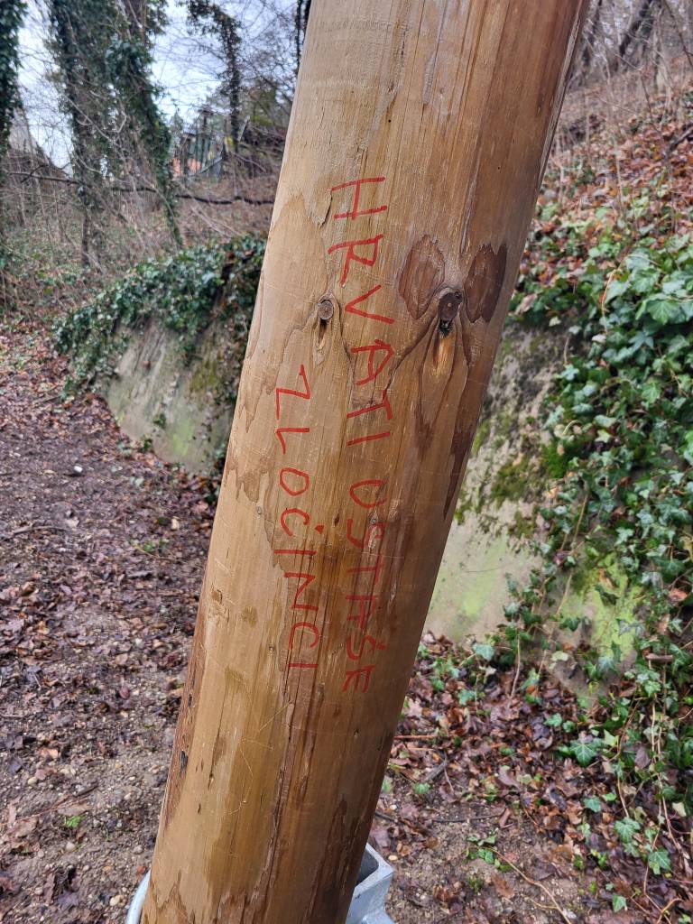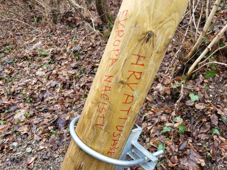Sovražni napisi na klopcah, svetilkah in lesenih konstrukcijah