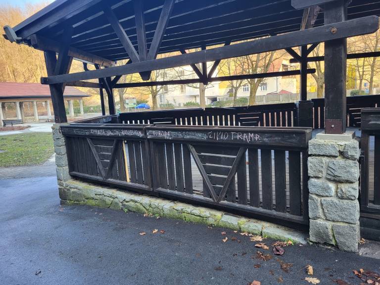 Med fotografijami, ki jih je posredovala, so jasno vidni napisi s sovražnim govorom, ki ne le kazijo videza parka, ampak tudi širijo neprimerna sporočila.