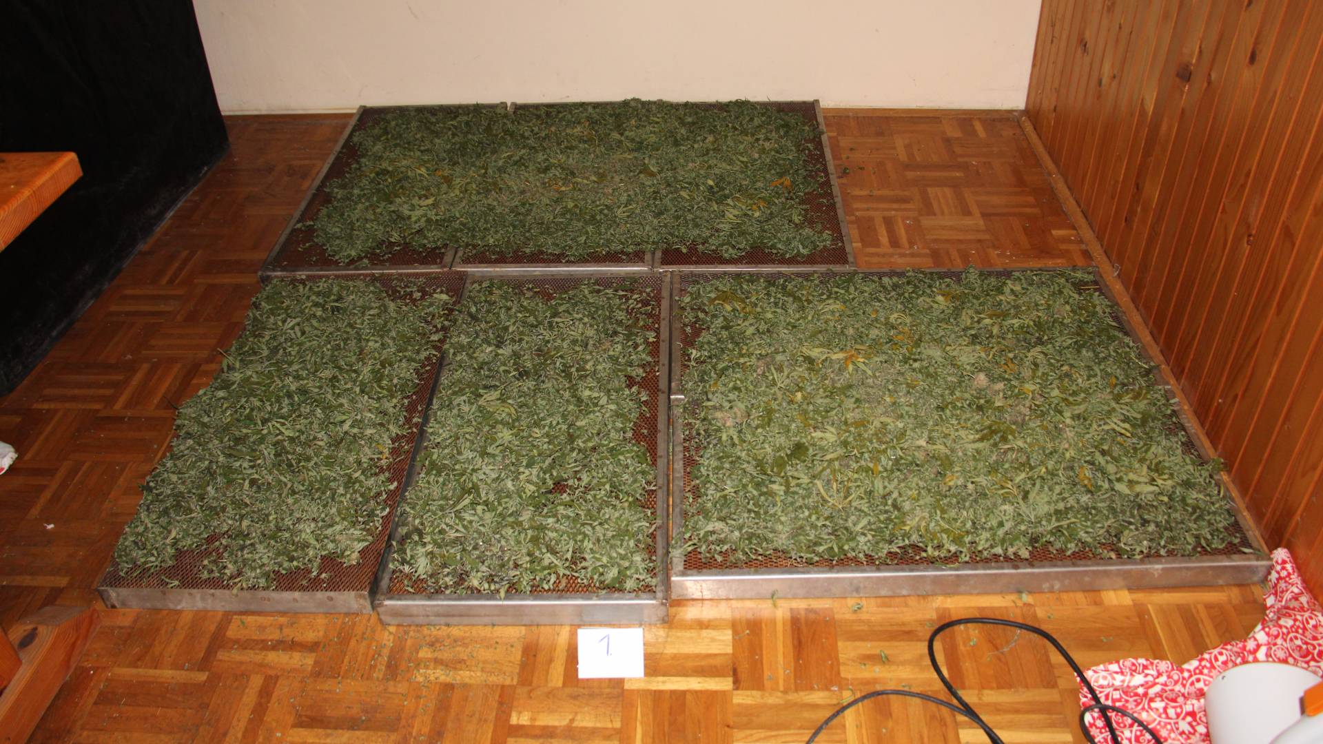 Zraven tega so našli in zasegli pripomočke za gojenje prepovedane droge (ventilatorji, grelec, karbonski filter zraka, vlažilec zraka in LED luči).