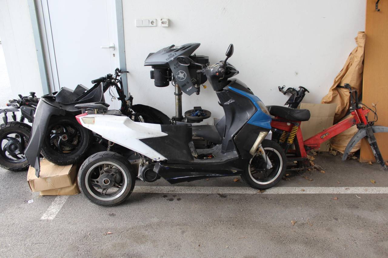 - kolo z motorjem - skuter znamke Peda, modro-bele barve.