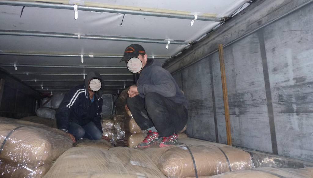 V notranjosti priklopnega vozila so nato našli dva državljana Afganistanca, stara 16 in 17 let, ki sta se na tak način želela izogniti mejni kontroli in nedovoljeno vstopiti v Slovenijo.