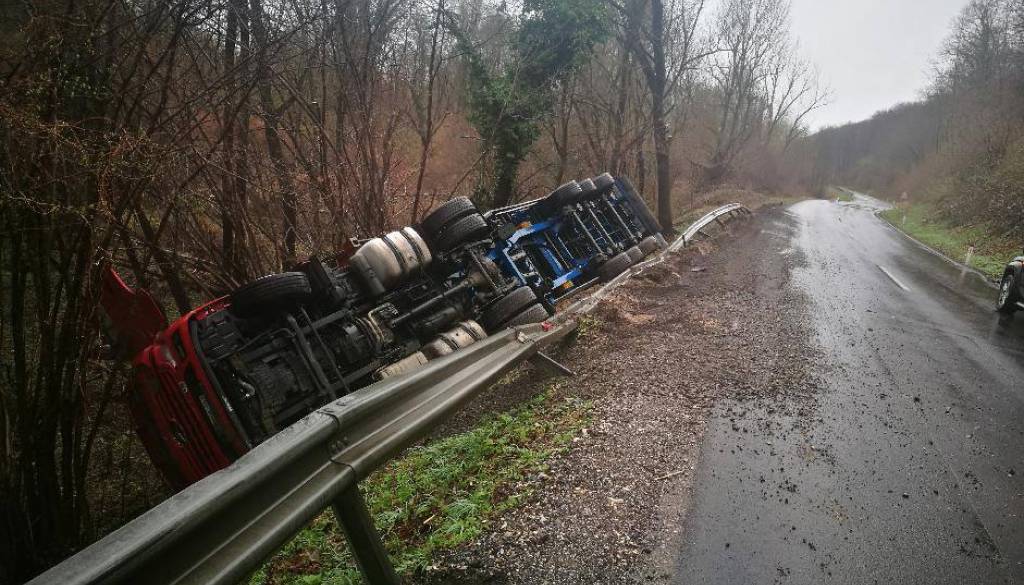 43-letni voznik tovornega vozila je vozil iz smeri Mednarodnega mejnega prehoda Zavrč proti Ptuju. Izven naselja Dolane je vozil preblizu desnemu robu vozišča, zaradi česar je zapeljal s ceste in se prevrnil na bok, na obrežje reke Drave. V nesreči ni bil nihče telesno poškodovan. Policisti so vozniku izdali plačilni nalog.