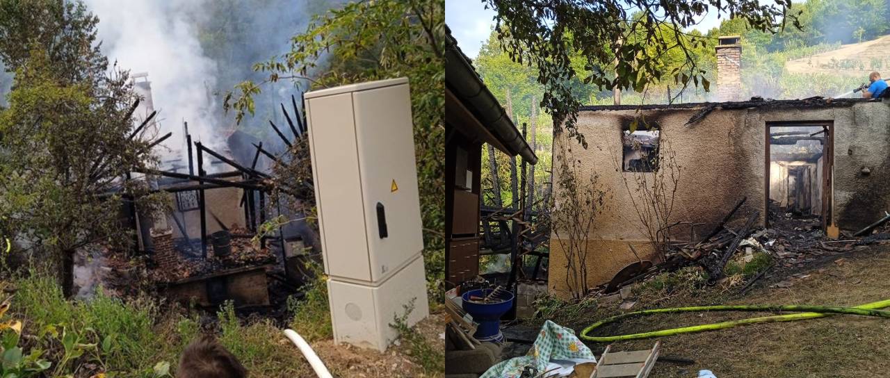 Objekt z nadstreškom v približni izmeri 12 krat sedem metrov je uničen v celoti, lastnik pa je umrl v požaru. O dogodku so bile obveščene pristojne službe.