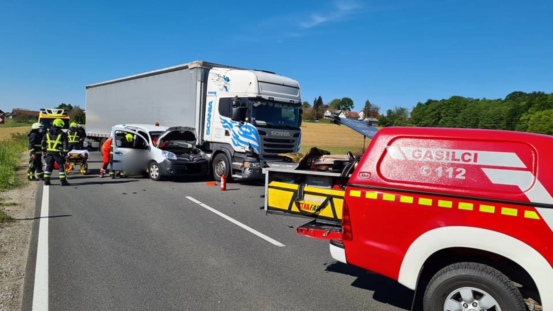 Na regionalni cesti v naselju Pavlovci se je včeraj, 7. maja, okoli 8.36, zgodila prometna nesreča II. kategorije. Udeleženi sta bili dve vozili, tovornjak in osebni avtomobil.