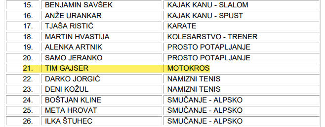 Na seznamu iz meseca novembra je Gajser še zabeležen (celotni novembrski seznam lahko preverite s klikom na to povezavo), medtem ko ga na decembrskem seznamu ni več (celotni decembrski seznam lahko preverite s klikom na to povezavo).