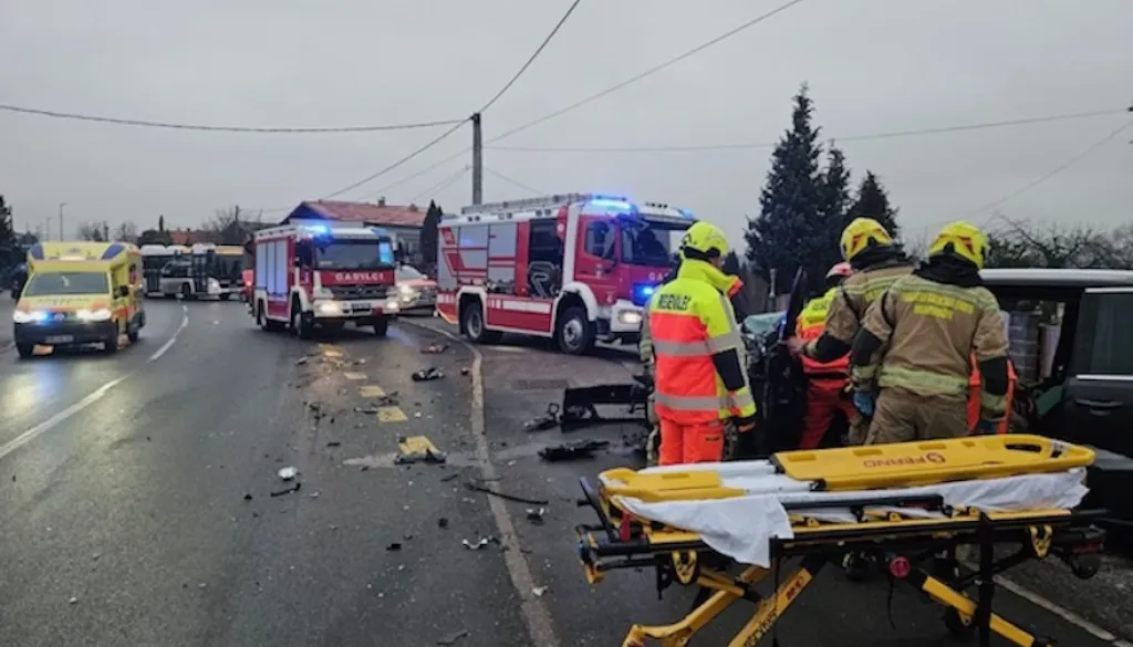 Tragična prometna nesreča na mokri cesti med Radovljico in Novo vasjo pri Lescah. V trčenju avtomobila in šolskega avtobusa je življenje izgubil voznik osebnega vozila, lažje poškodovani štirje otroci.