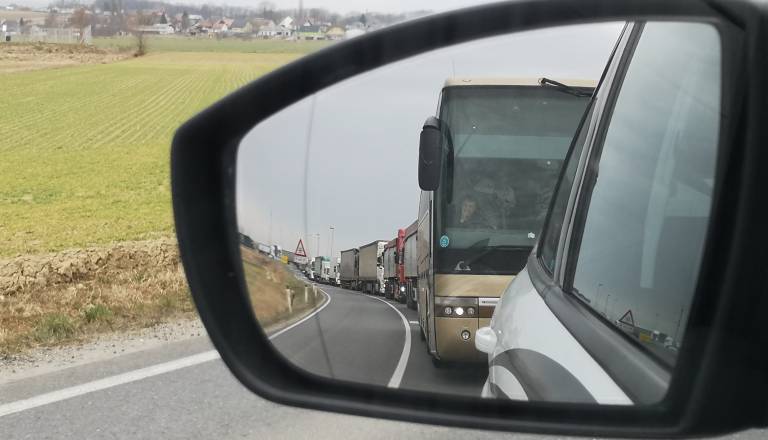 Na avtocestnem odseku A5, ob izvozu Sv. Trojica, je prišlo do trčenja med voznikoma osebnega avtomobila in tovornega vozila.