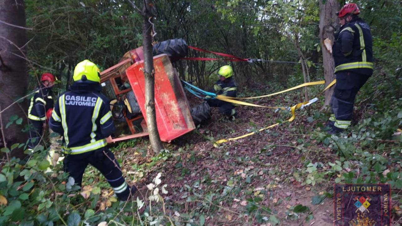 Policisti Policijske postaje Lenart so bili obveščeni, da je 60-letnik med vožnjo s traktorjem na travniškem pobočju padel s traktorja pred kolesa in se pri tem huje poškodoval.