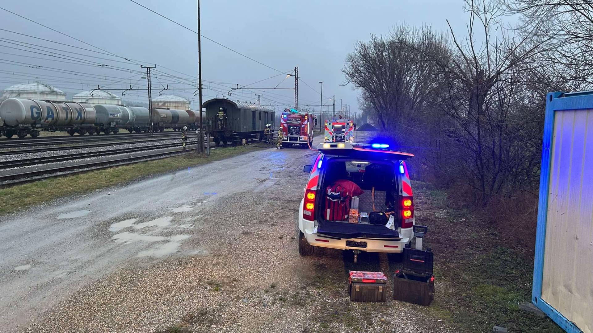 Požar v opuščenem železniškem vagonu v Račah: Gasilci hitro ukrepali.