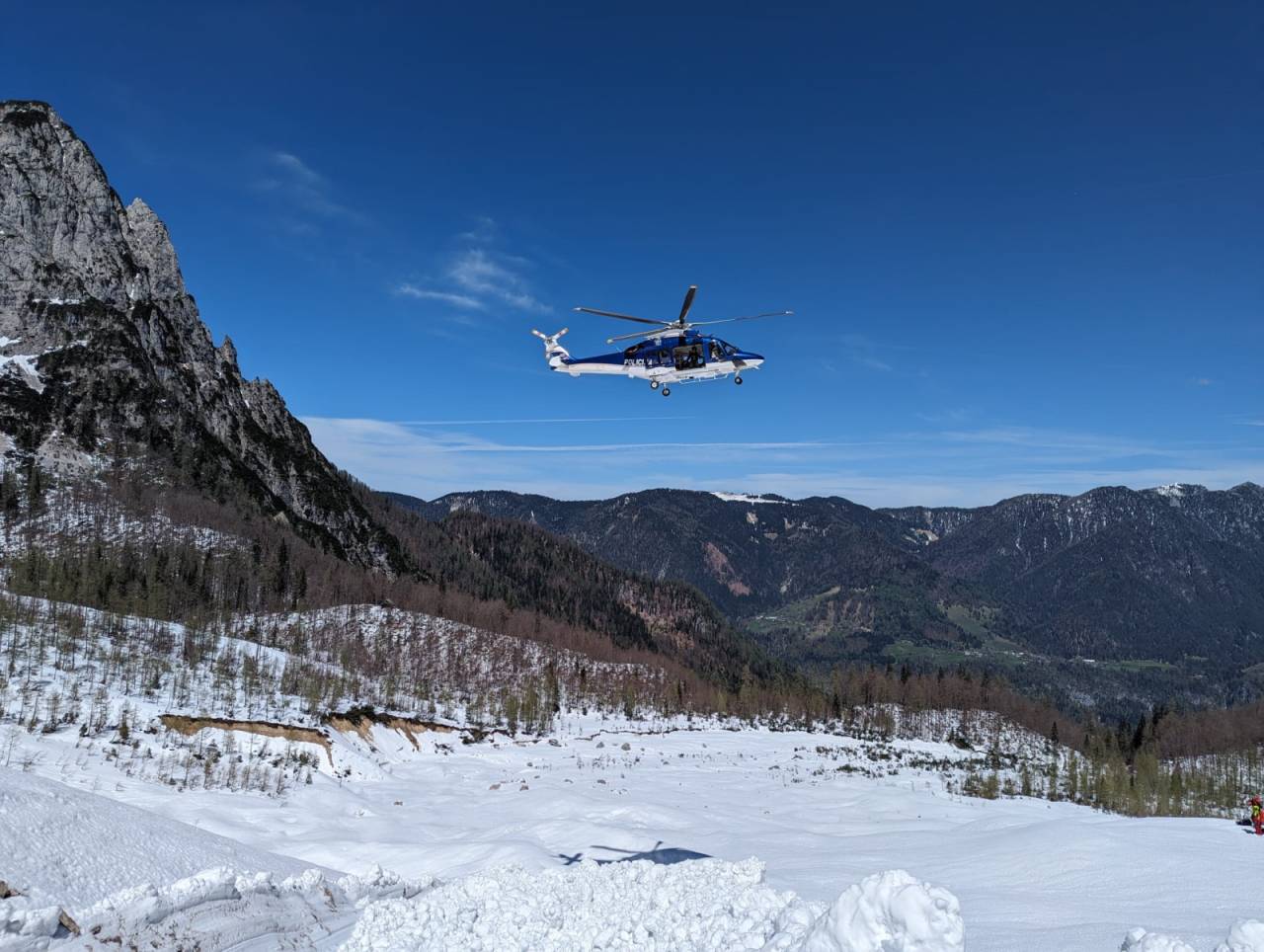 Posadka Letalske policijske enote je z namensko helikoptersko žolno v izjemno kratkem času natančno locirala mesto, kjer je bil zasut ponesrečeni. Na kraj so takoj odložili gorskega reševalca in zdravnika ter nato prepeljali še dodatne gorske reševalce, ki so ponesrečenega locirali in odkopali izpod snega. Sneg je bil zelo težak.