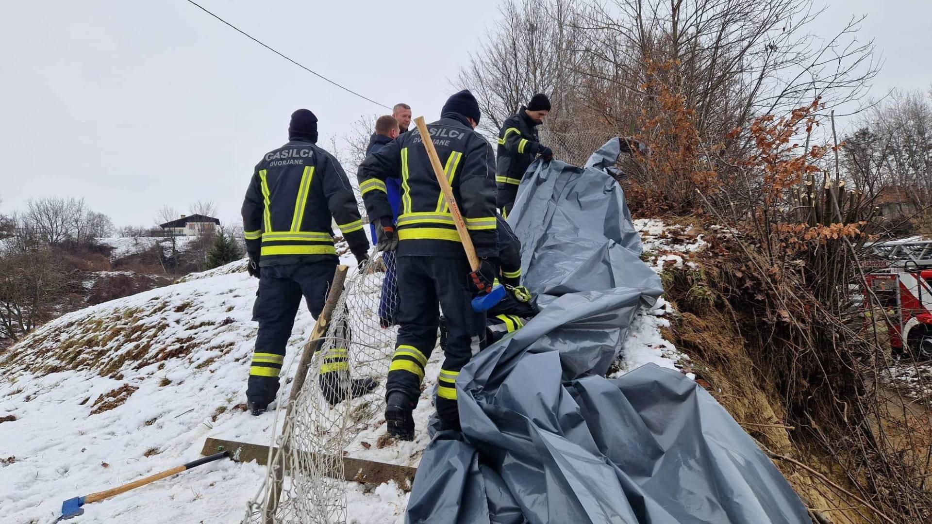Zemeljski plaz velikosti 15 x 4 metre so prekrili gasilci, nadaljnjo sanacijo pa so prevzele pristojne službe.
