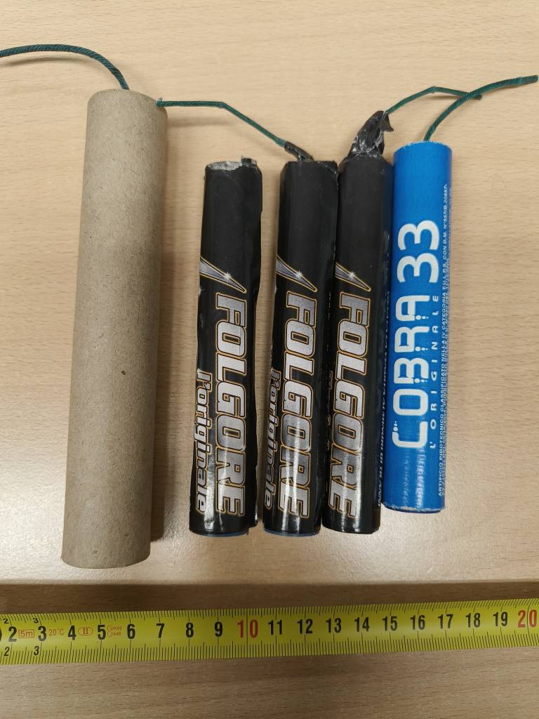 Prav tako so zasegli pirotehnične izdelke in sicer pet ognjemetnih izdelkov – petard, katerih posest je prepovedana.