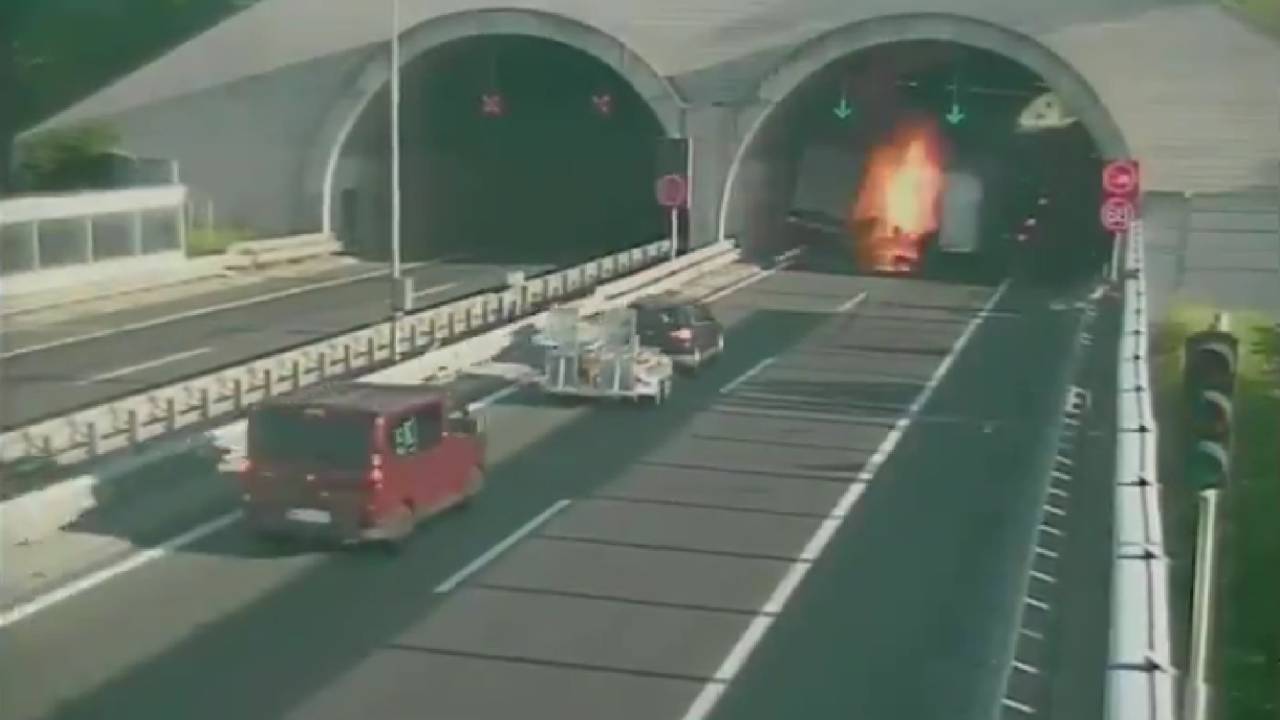 »Ob 6.56 je tovorno vozilo v pokritem vkopu Malečnik trčilo v kolono in se pri tem vnelo,« so zapisali ob objavi posnetka.