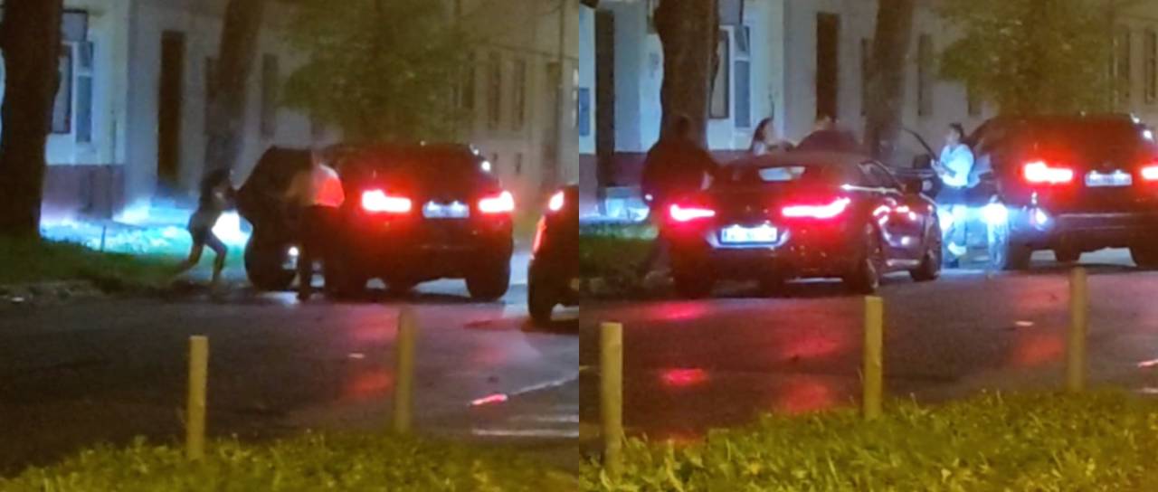 Fizični obračun traja kar nekaj časa, potem se pa pripelje še en avtomobil, iz katerega stopita dva moška. Iz posnetka je še razvidno, da eden od njiju primaže klofuto eni od žensk.