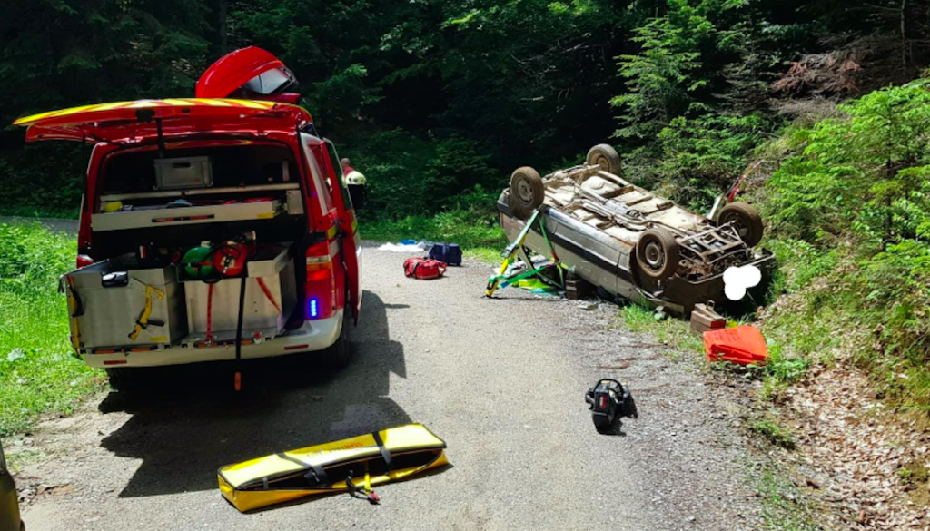 V naselju Hudi kot v občini Ribnica na Pohorju je ob 11.46 prišlo do prometne nesreče - osebno vozilo se je obrnilo na streho.