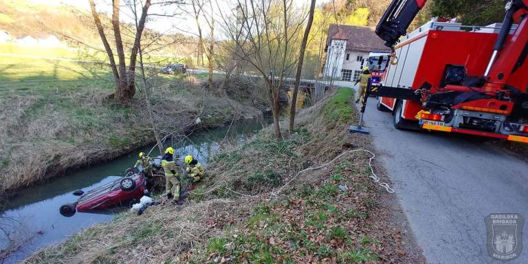 V Kozjaku nad Pesnico v občini Kungota je voznik z osebnim vozilom zapeljal v vodotok Pesnico.