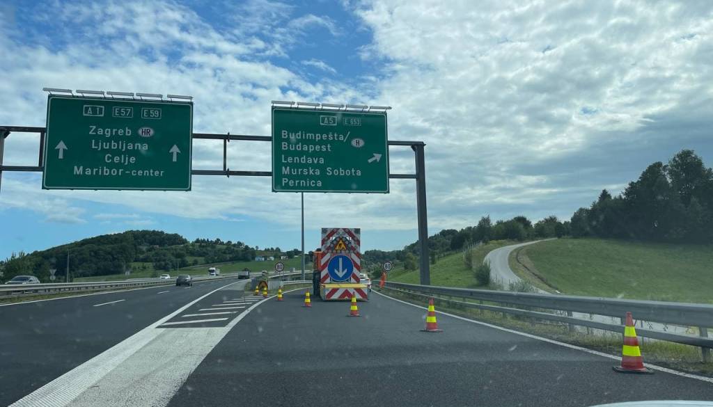 Zaprt je razcep Dragučova iz smeri Šentilja proti Lendavi.