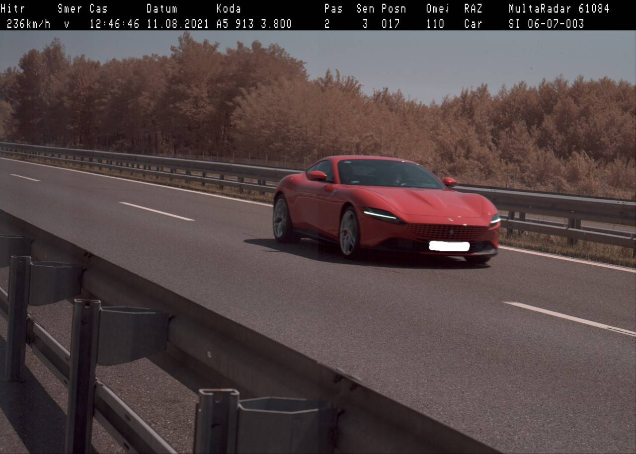 Voznik osebnega avtomobila Ferarri je vozil s hitrostjo 236 kilometrov na uro, kljub temu da je hitrost omejena na 110 kilometrov na uro.