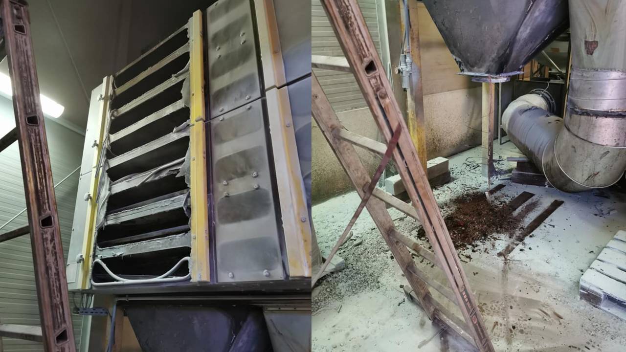 Policisti so ugotovili, da je požar zanetila iskra, ki je v lovilcu isker prišla v tkanino mikrofiltra.