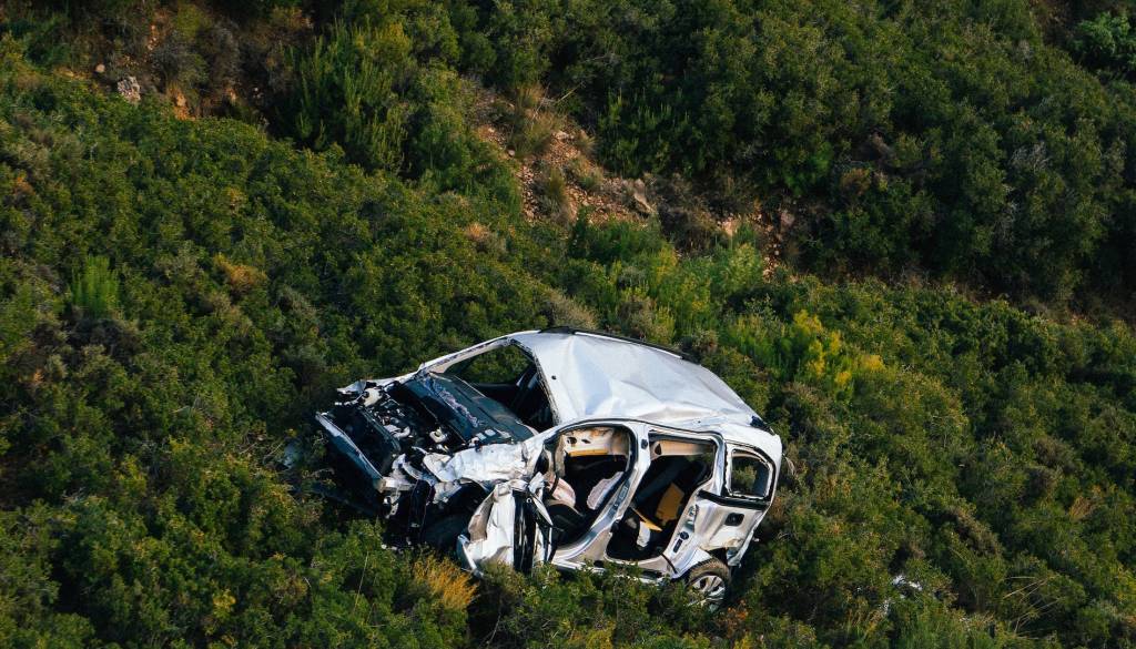Z vozilom je zapeljal desno izven vozišča na neutrjeno travnato bankino in po nekaj metrih s prednjim delom avtomobila oplazil drevo blizu vozišča, nato pa se je vozilo začelo prevračati po brežini pod cesto in po dobrih trinajst metrov obstalo, z zadnjim delom naslonjeno na manjše drevo.