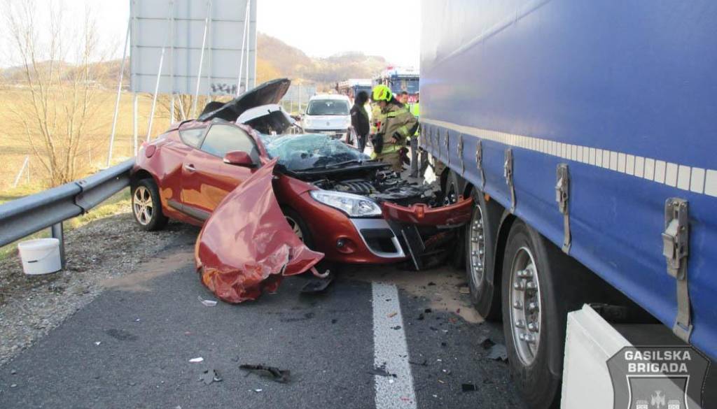 Najprej policisti, nato še gasilci so bili obveščeni, da je prišlo na avtocesti Dobrenje–Šentilj v Slovenskih goricah v občini Pesnica do trka osebnega in tovornega vozila. 33-letni Šentiljčan je zaradi neprilagojene hitrosti vožnje trčil v zadnji del tovornega vozila s priklopnikom, ki je pravilno stal v stoječi koloni pred cestninsko postajo Dobrenje na voznem pasu avtoceste. Voznik tovornega vozila je bil 37-letni državljan Srbije, ki stanuje v Radovljici.
