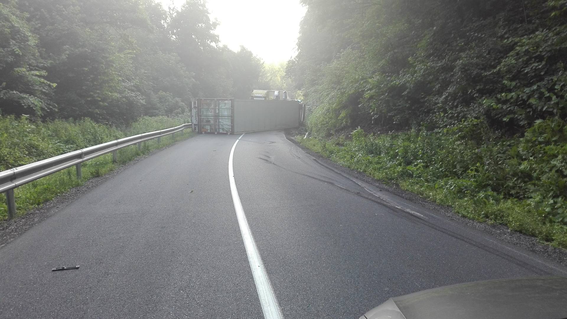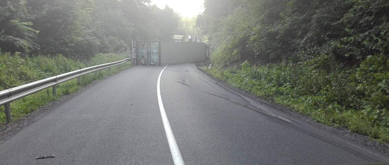 Zaradi prometne nesreče je popolnoma zaprta cesta Dolane - Zavrč, za tovorna vozila obvoz ni mogoč, kar pomeni, da nastajajo daljši zastoji.
