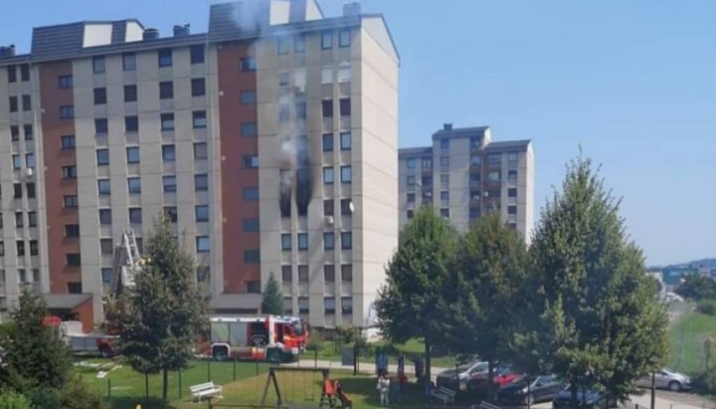Gorelo v stanovanjskem bloku. Stanovanje povsem uničeno, zaradi vdihavanja ogljikovega monoksida poškodovanih 15 ljudi.