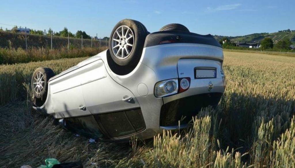 Voznik osebnega avtomobila je, da bi preprečil trčenje, zavil v desno, najprej na bankino, nato pa se je vozilo prevrnilo po brežini navzdol še pet metrov.