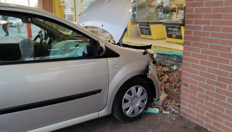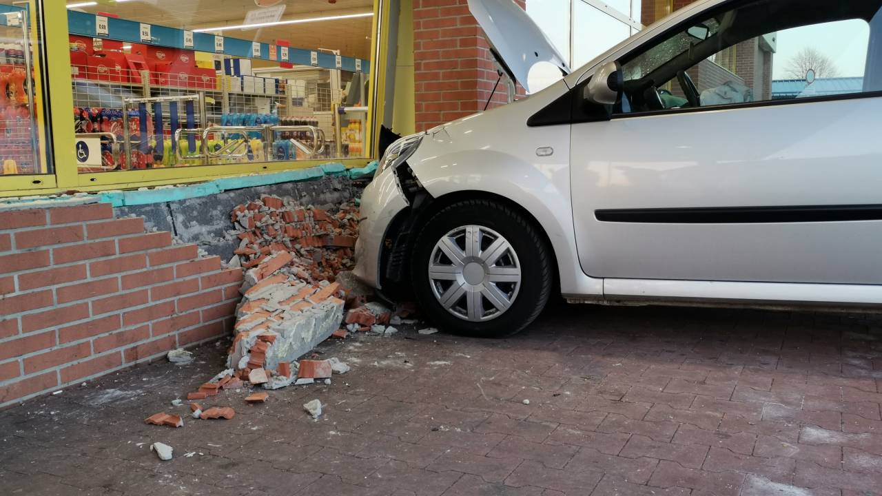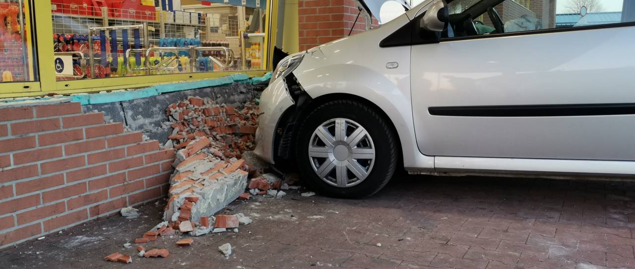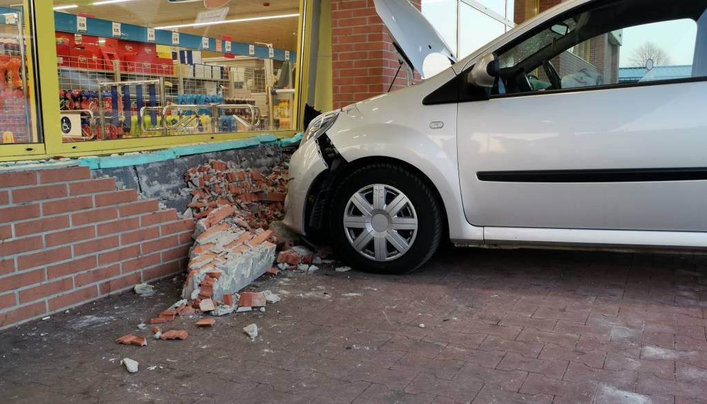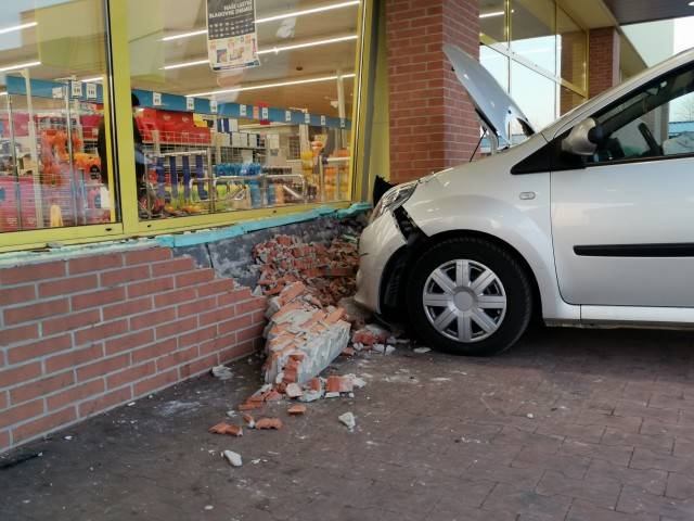 Na Ormoški cesti na Ptuju je včeraj, ob 14.21, prišlo do nenavadne prometne nesreče, saj se je voznica zaletela v pročelje trgovine z živili.