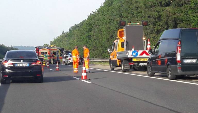 Na avtocesti Celje - Maribor, kilometer pred izvozom Dramlje, se je včeraj, ob 16.46, zgodila prometna nesreča, v kateri so bila udeležena štiri osebna vozila in eno tovorno vozilo.