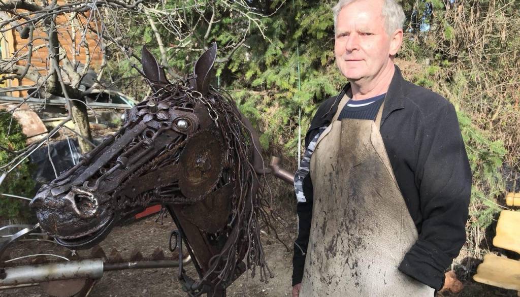 Njegov vrt krasijo konji iz železa in lesa, riba z drobovino iz avtodelov, pa zmaj, ki pa še ni dokončan. Ustvarja tudi iz kamna in starega lesa, ki ga najde v gozdu. Ena izmed skupltur je nastala celo iz grud asfalta, ki ga je našel ob cesti.
