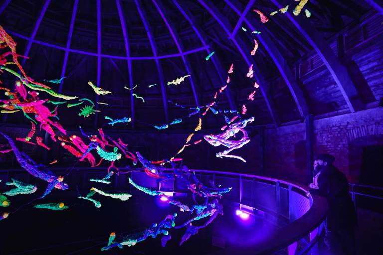 Gre za unikatno umetniško instalacijo Mateja Bizovičarja, ki združuje projekte Ribogunci, Jasli in Kapsule ter na domiseln način prepleta teme življenja, njegove trdovratnosti in čudežnosti.