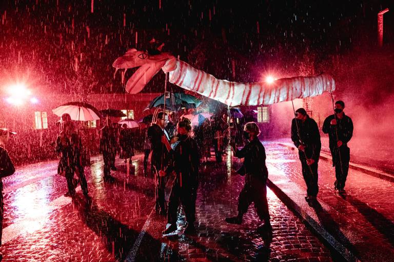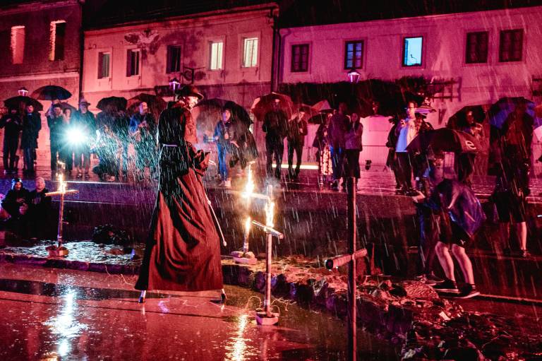 Tokrat so to storili z otvoritvijo prenovljenega Vojašniškega trga. Uprizorili so ulično predstavo po motivih ljudske pripovedke o kačji kraljici.