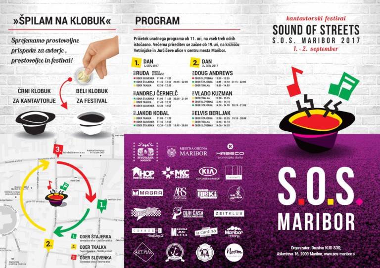 Kantavtorski ulični festival S.O.S. Maribor - Sound of Streets je že tretjič zajel ulice Maribora. Nastopili so Jakob Kobal iz Idrije, Andrej Černelč iz Bistrice ob Sotli in Andrej Boštjančič RUDA iz Bistrice ob Sotli. Danes pa se bodo predstavili še Elvis Berljak iz Maribora, Vlado Kuzman iz Hrvaške in Doug Andrews iz ZDA.