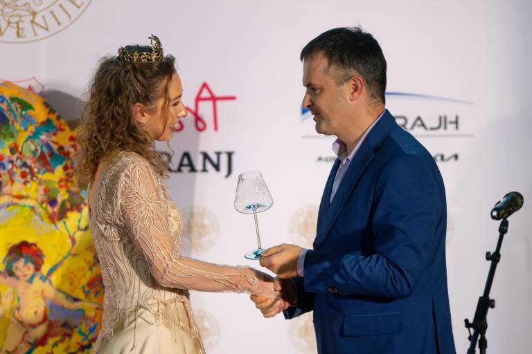 Od Steklarne Rogaška je prejela še ročno izdelane vinske kelihe z logotipom Vinske kraljice Slovenije in osebnim podpisom, kar ji bo nudilo posebno doživetje ob pokušanju vina.