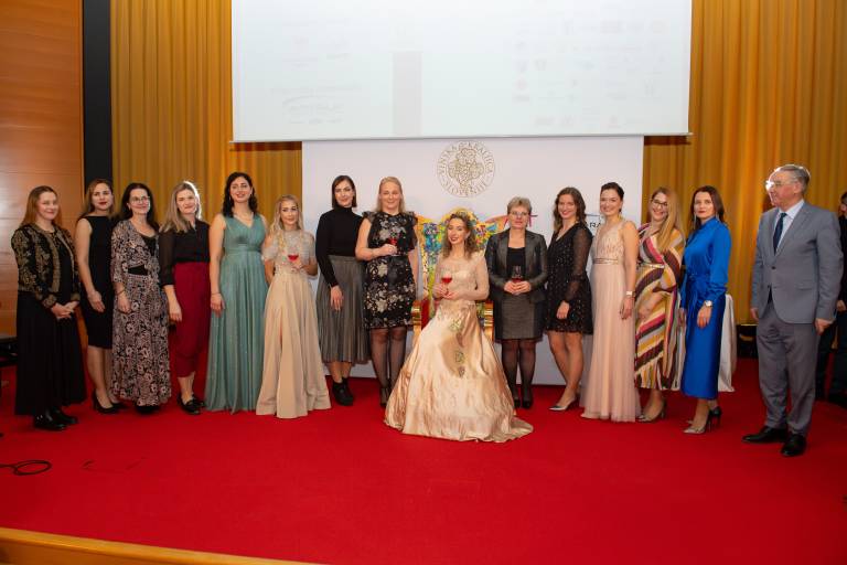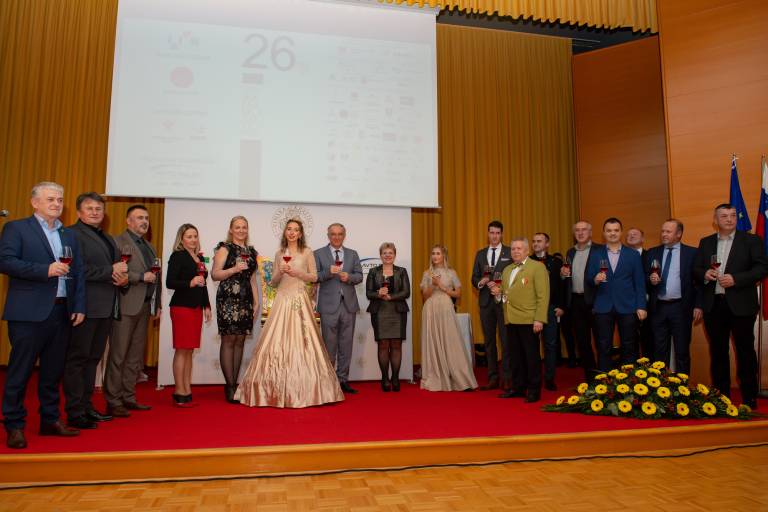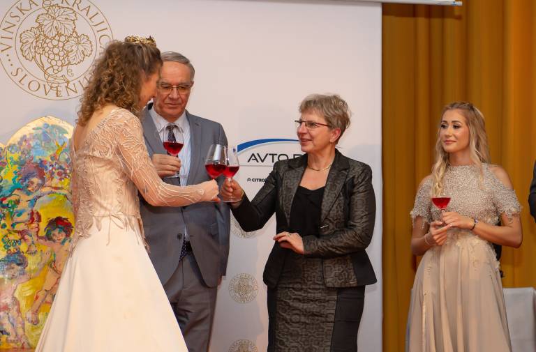 26. Vinski kraljici Slovenije so čestitali in zbrane nagovorili Roman Žveglič, predsednik Kmetijsko gozdarske zbornice Slovenije, Borut Florjančič, predsednik Zadružne zveze Slovenije, in Vesna Maučec, izvršna direktorica Zdravilišča Radenci, Sava Turizem.