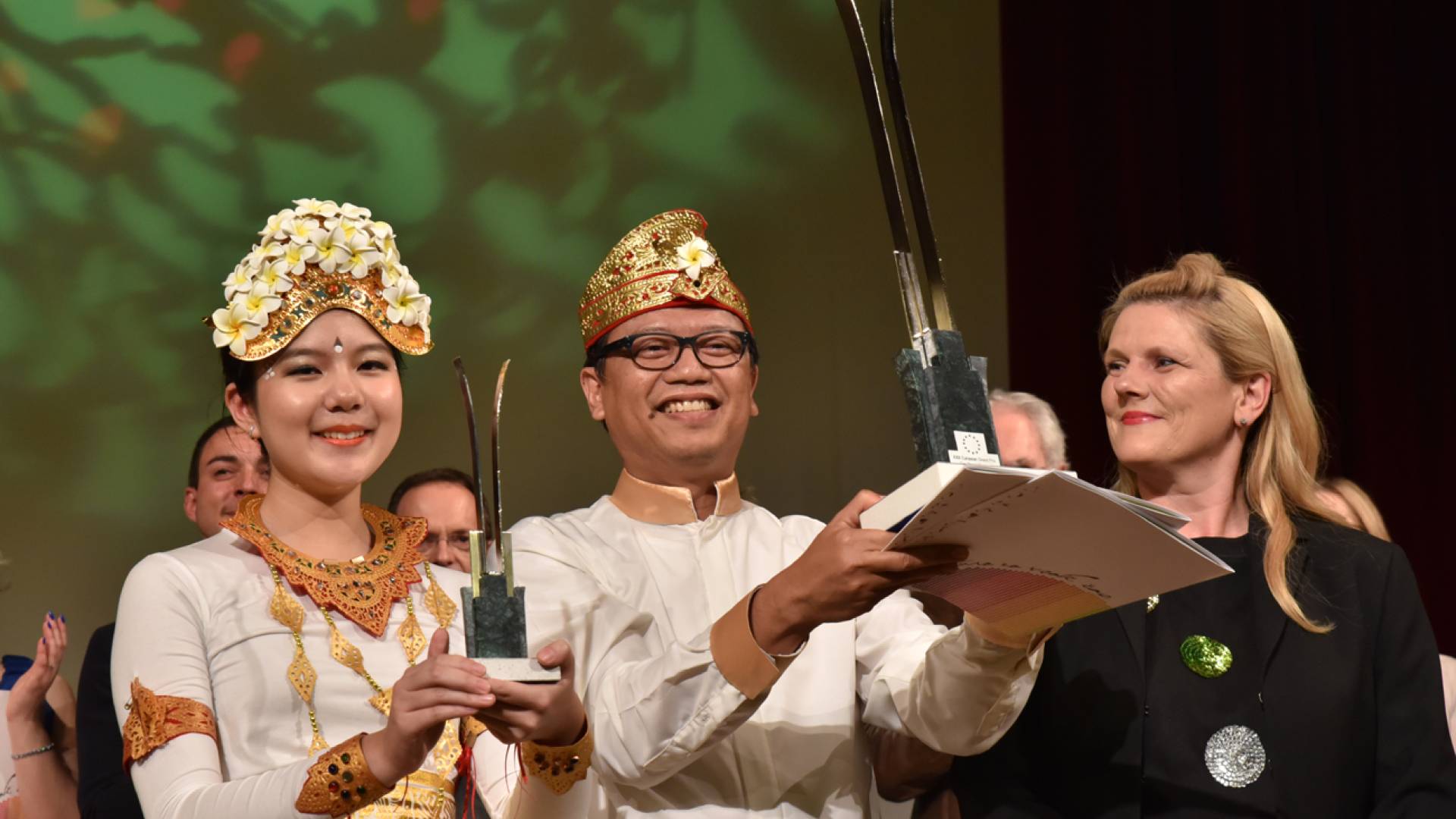 Na sobotnem finalu za veliko zborovsko nagrado Evrope so v Dvorani Union v Mariboru slavili Indonezijci, ki jih vodi zborovodja Avip Priatna.