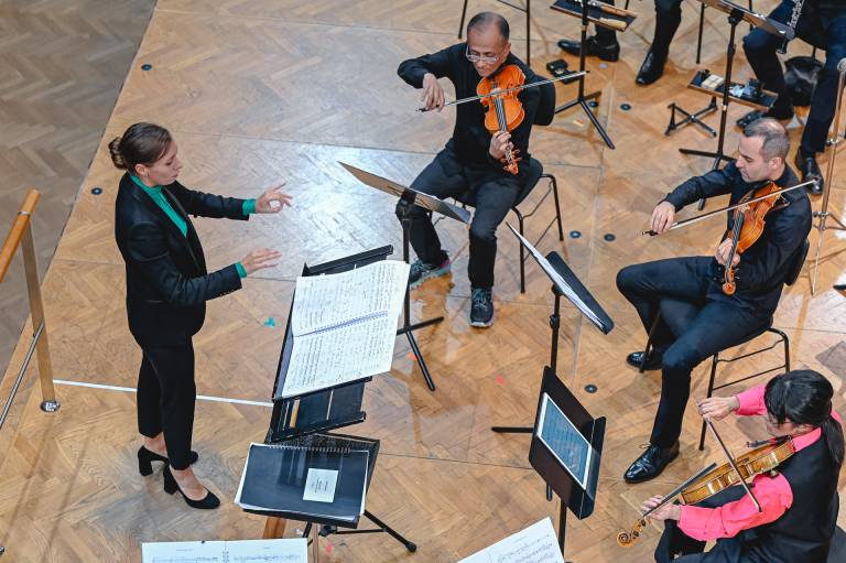 Za dirigentsko taktirko je poprijela Lucie Leguay, zasedbi pa se je tokrat pridružila sopranistka Nika Gorič.