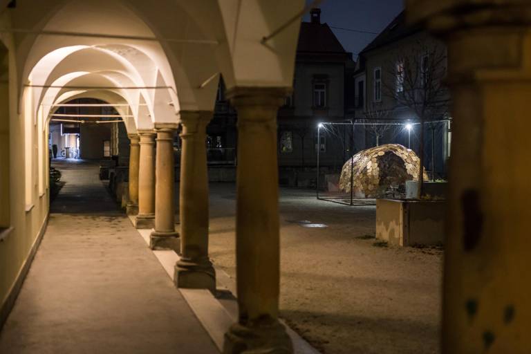 Na umirjenem Rotovškem trgu je avtorica Vlasta Čobal Sedmak ustvarila Začasnico - invazivna kockasta korita z drevesi, vrinjenih na trg je postavila – kocko. Z razliko od obstoječe urbane opreme ima Začasnica organsko formo, ki spominja na kokon, bubo, zapredek in asociira na varno zavetje in razvoj. Intimno doživljanje igre svetlobe, ki je vidna samo ponoči in pronica skozi čipkaste vzorce ter opleta in zapleta tla.