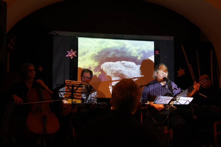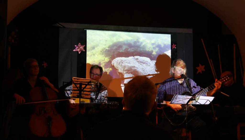 Kitarist, pevec in skladatelj Peter Andrej je s skupino Zatopato s koncertom uglasbenih pesmi Erike Vouk v Vetrinjskem dvoru zaključil leto, v katerem je mariborska pesnica in prevajalka prejela Prešernovo nagrado za življenjsko delo.