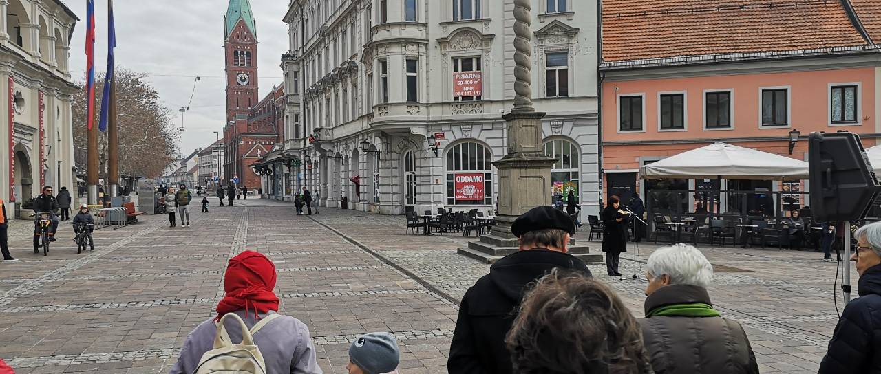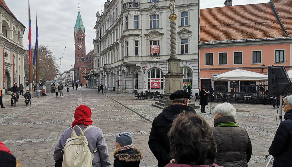 Na mariborskem Grajskem trgu so se člani Združenja dramskih umetnikov Slovenije pridružili tradicionalnemu recitalu Prešernove poezije ob slovenskem kulturnem prazniku.