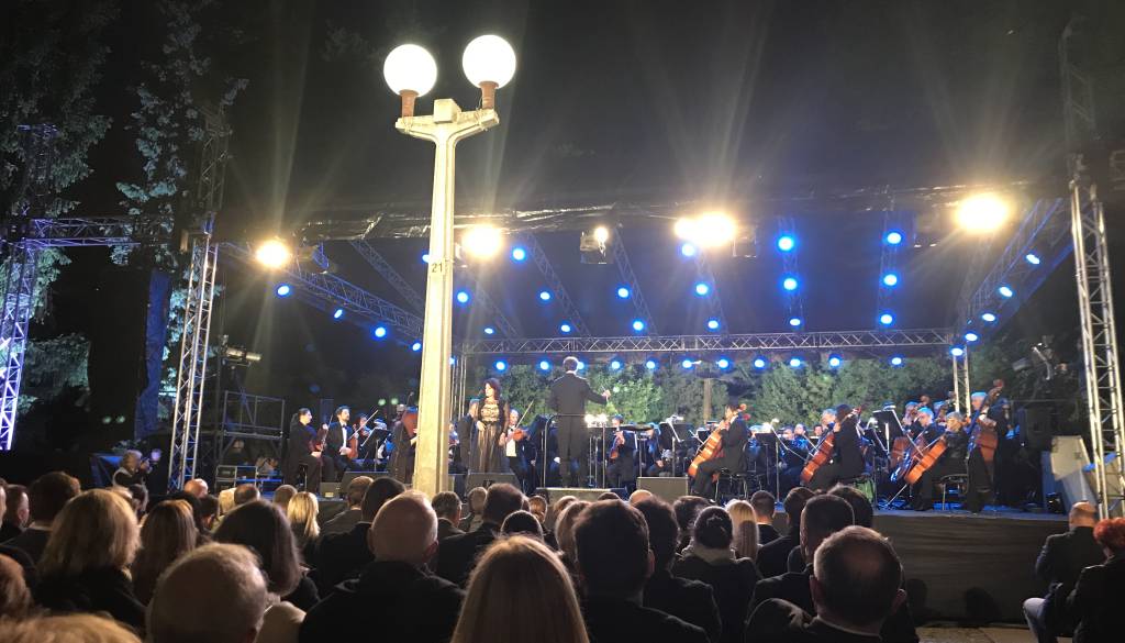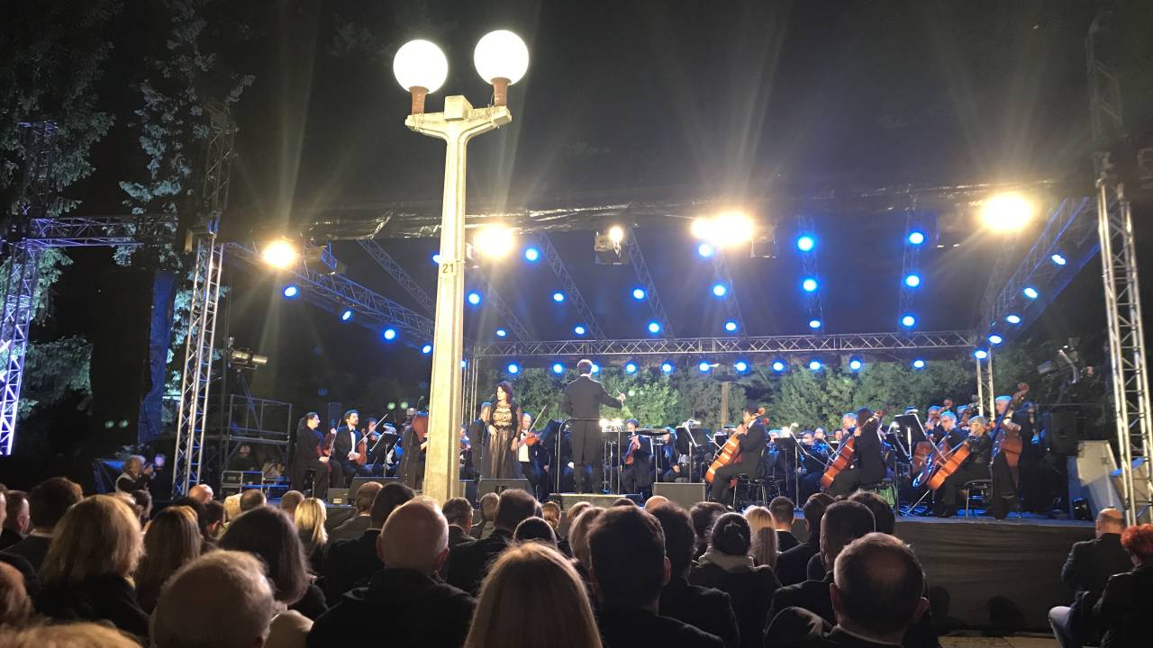 Društvo Ezl ek in Opera SNG Maribor sta včeraj ponovno pripravila spektakel opernega petja v spremljavi simfoničnega orkestra SNG Maribor v Mestnem parku.
