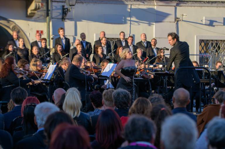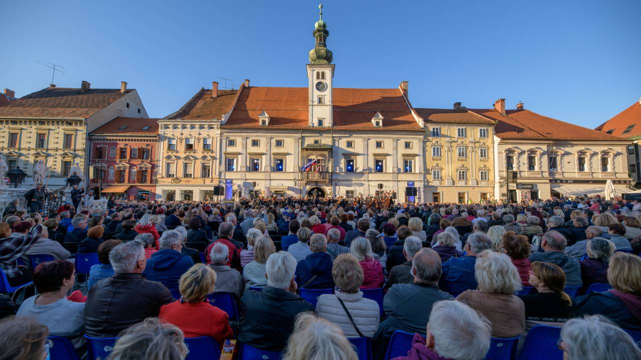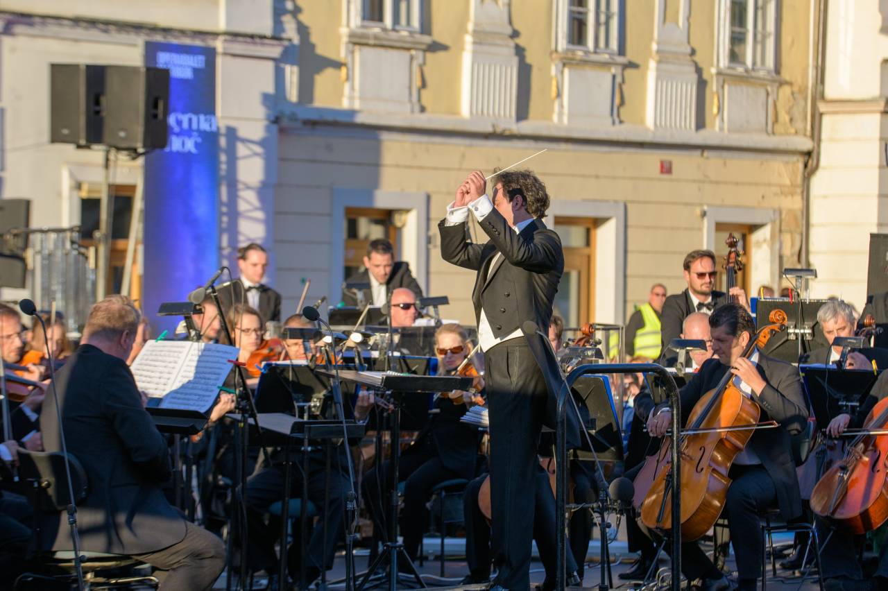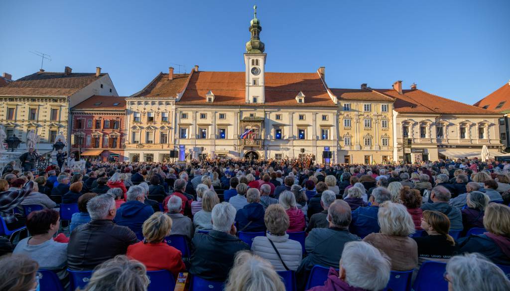 Simfonični orkester Slovenskega narodnega gledališča Maribor je pod taktiriko Simona Krečiča tokrat zavil v center mesta. Spektakel je letos prvič na Glavnem trgu.