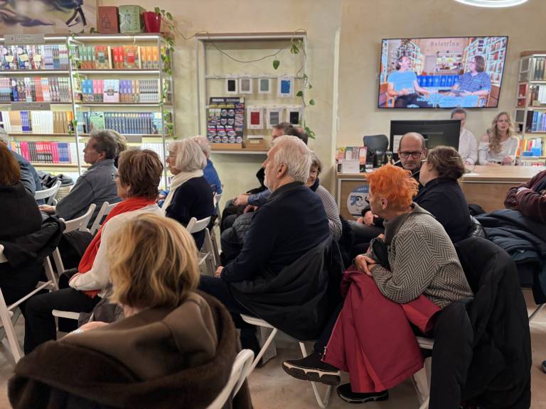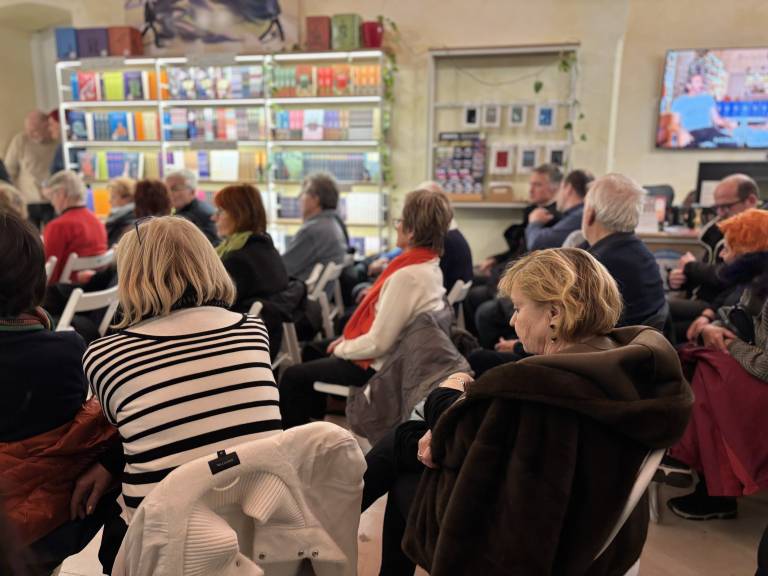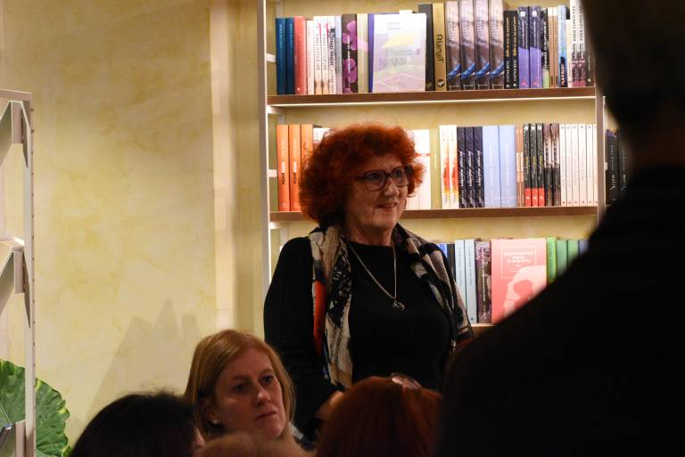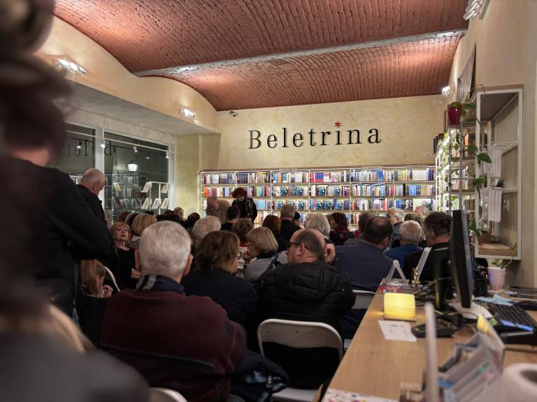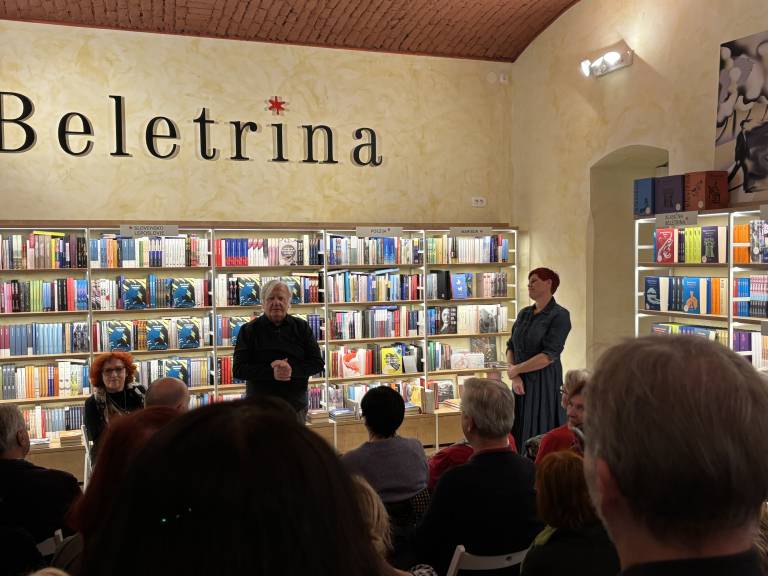 Dogodek je pritegnil številne obiskovalce, ki so spremljali pogovor med avtorjem in Darjo Tancer-Kajnih