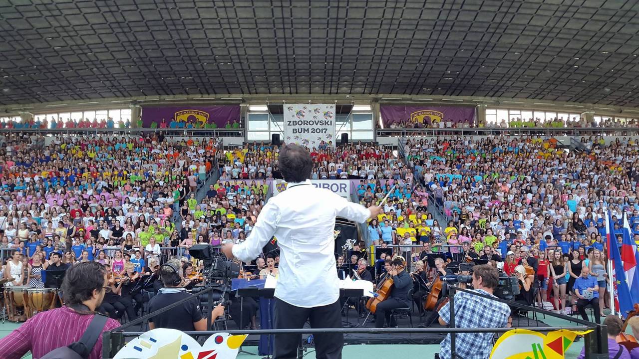 Ob spremljavi Simfoničnega orkestra SNG Maribor pod taktirko dirigenta Simona Krečiča je danes v Ljudskem vrtu pelo okoli 5500 pevcev mladinskih šolskih pevskih zborov iz 180-ih slovenskih osnovnih šol ter priznani operni pevci opernega ansambla SNG Maribor; sopranistka Andreja Zakonjšek Krt, altistka Irena Petkova, tenorist Martin Sušnik in baritonist Jaki Jurgec.