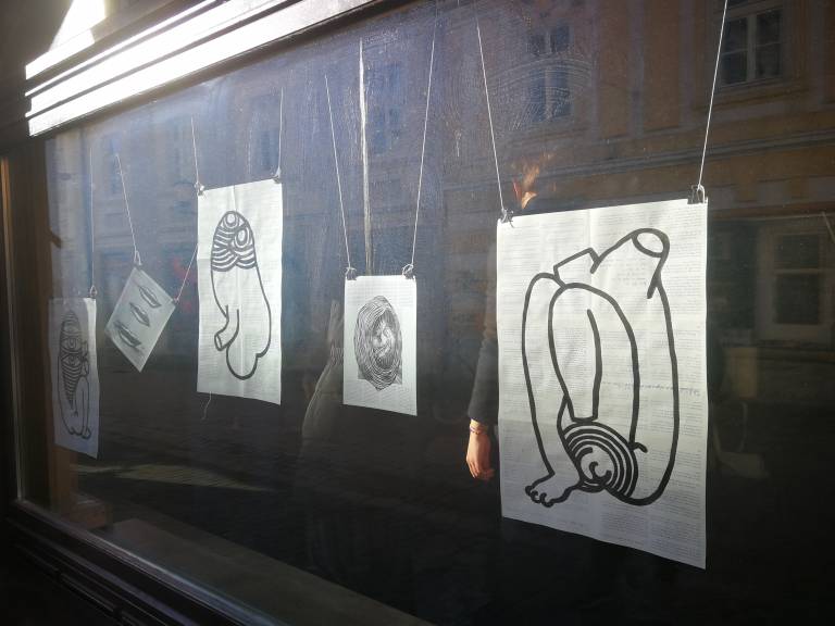 Društvo IndiJanez in pet umetnikov je v Mariboru pripravilo ulične razstave, ki so postavljene kar v izložbe zaprtih gostinskih lokalov.